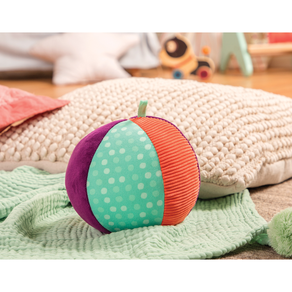 Der se, weiche verformbare Ball hat tolle Glkchen im Inneren. Der weiche, strukturierte Stoff im Patchwork Design hat schen unterschiedliche Farben, um die Neugierde zu wecken und die Feinmotorik zu schulen.