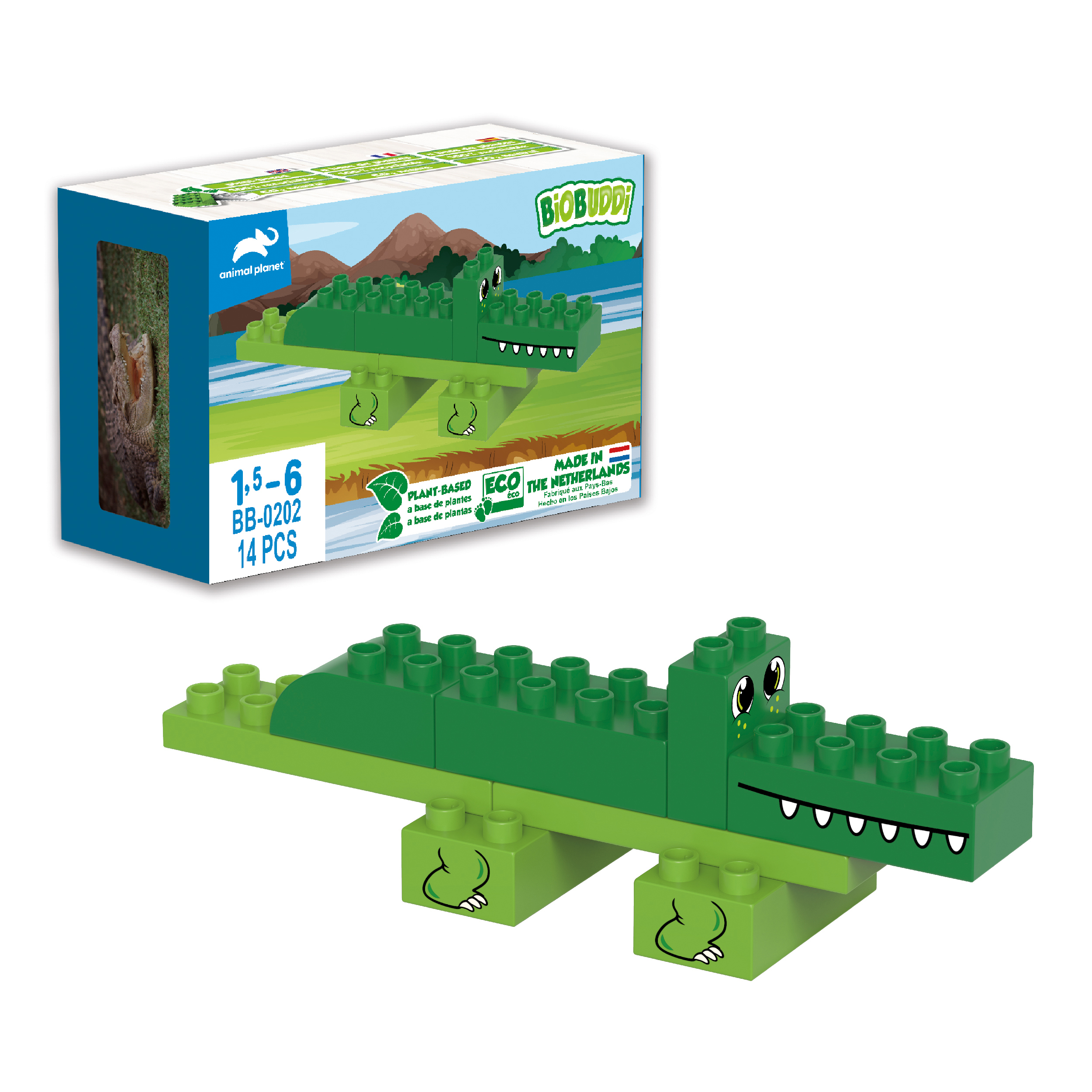 Entdecken und lernen Sie das Krokodil von BiOBUDDi auf spielerische Art und Weise. Das Animal planet crocodile playset besteht aus 8 Bausteinen mit mehreren Aufdrucken und 6 Ausdruckskarten. Verwenden Sie diese Bausteine, um gemeinsam mit Ihrem Sohn oder Ihrer Tochter Ihr eigenes Animal planet crocodile zu bauen. Drucken Sie die brandneuen Ausdruckskarten aus der 100% recycelbaren Verpackung aus und spielen Sie ein lehrreiches Memory-Spiel. Alle BiOBUDDi Spielzeuge f 2-jrige Kinder sind ologisch produziert, sie werden aus den Resten der Zuckerrohrpflanze hergestellt. Das Spielen mit Bauklzen ist gut f die motorische Entwicklung eines Kleinkindes. Darer hinaus zeigen Sie mit BiOBUDDi, dass Sie verantwortungsvoll mit dem Planeten und der Zukunft der Erde umgehen. BiOBUDDi garantiert stundenlangen, sicheren und verantwortungsvollen Spielspa