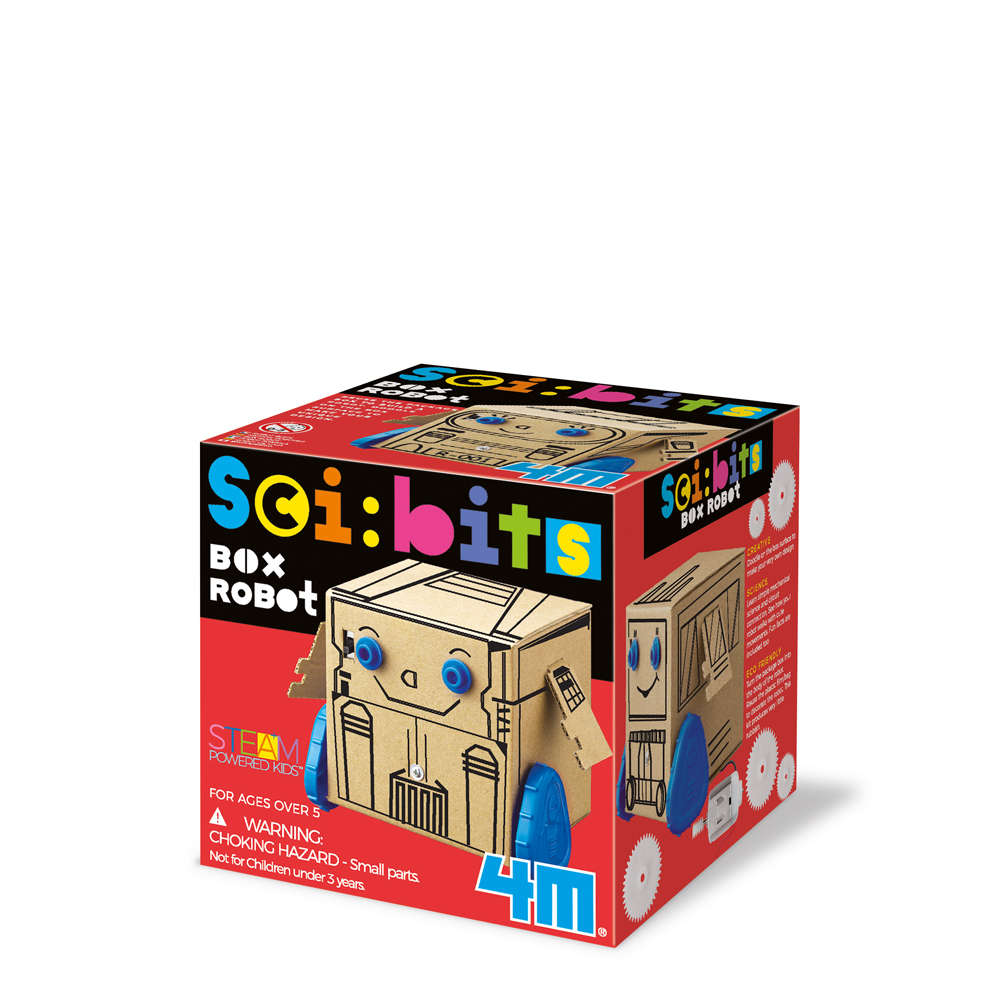 Verwende das komplette Set inklusive der Verpackung, um damit einen Roboter zu bauen. Zeichne auf die Schachtel, um dein einzigartiges Design zu entwerfen.