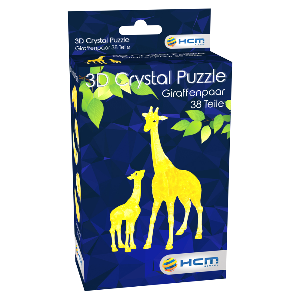 Crystal Puzzle - Giraffenpaar (38 Teile) Setzen Sie aus den verschieden geformten Einzelteilen Stk f Stk zwei wundersche Kunststoff-Kristallfiguren einer kleinen und gron Giraffe zusammen. Das dreidimensionale Puzzle ist eine echte Herausforderung f das rmliche Vorstellungsvermen: Die zweidimensionalen Bilder der Anleitung msen in dreidimensionale Objekte umgesetzt werden. Jedes 3D-Puzzleteil sieht anders aus und macht es somit besonders knifflig. Wer gut im Knobeln ist, wird schlieich mit einem hochwertigen ca. 12 cm gron Dekorationselement belohnt. Sammeln Sie alle Puzzles und entdecken Sie jetzt auch die gron Crystal Puzzles mit noch mehr Teilen.