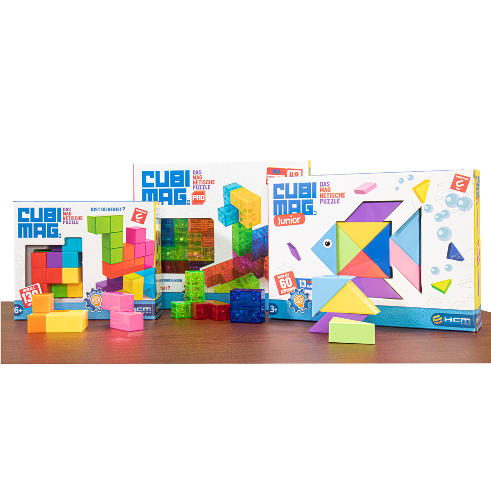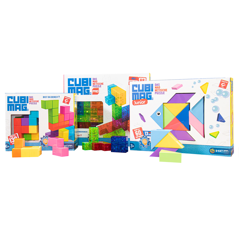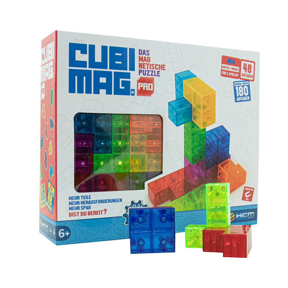 Cubimag PRO, die neue und erweiterte Variante von Cubimag, bietet faszinierendes 3D Puzzeln f alle Puzzleliebhaber. Die integrierten Magnete halten die bunten Puzzleteile in unterschiedlichen Formen und Farben wie durch Zauberhand zusammen. Auf kreative Weise forderst und fderst du mit dem magnetischen Puzzle logisches und rmliches Denken, wrend du dich er 180 spannenden Herausforderungen stellst. Mit mehr Teilen, mehr Herausforderungen und einem neuen Zwei-Spieler-Modus. Im coolen Cubimag PRO Doppelmodus kannst du gegen deine Freunde antreten. Wer von euch holt sich wohl den Sieg? 1. Wle eine Aufgabe aus dem Buch - Es gibt drei Stufen: leicht, mittel und fortgeschritten. 2. Wle, die f diese Herausforderung erforderlichen magnetischen Puzzleteile aus. Diese werden unter jeder Aufgabe angezeigt. 3. Le die Aufgabe alleine, oder duelliere dich mit einem Mitspieler. Euer Ergebnis knt ihr mit den Lungen am Ende des Buches erpren.