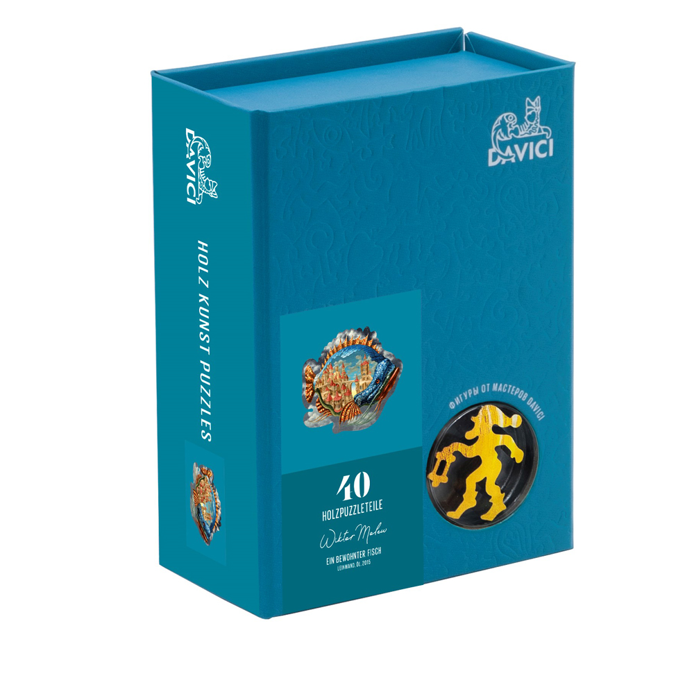 Der Stadtfisch. Display Kollektion 2. KstlerIn Viktor Molew. Leinwand, . 2015 DAVICI ist der aus Russland stammende Vorreiter im Bereich von Holzpuzzles mit fantasie-vollen Formen. Wie ein Buch erzlt die Box in deinen Hden die Geschichte der Kunstwerke mit Helden, Mchen und rselhaften Handlungen. DaVICI steht f einzigartige Puzzles aus hochwertigem Birkenholz mit extravaganten Formen und Liebe zum Detail. Durch prises Laserschneiden passen die aufwendig geformten Teile perfekt ineinander. In dieser Welt der Puzzles erwachen Menschen, Vel und wilde Tiere, Kige und Wanderer, Sterne und Plane-ten zum Leben. Die Motive der Puzzles basieren auf Gemden gror russischer Kstler. Das Gemde des Kstlers ergibt in Kombination mit den Puzzleteilen, die auf die Geschichte des Autors abgestimmt sind, ein vollkommenes Meisterwerk. Beim Zusammensetzen der intellek-tuellen DAVICI Puzzles tauchst Du in eine erstaunliche Welt voller Illusionen, Geheimnisse und Mysterien ein. Ein haptisches Vergnen mit grortigen Details und angenehmem Duft nach Holz. Die Puzzles von DAVICI schaffen wundervolle Erinnerungen und kostbare Gefle, und beleben etwas, das wirklich wertvoll ist.