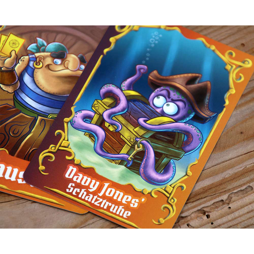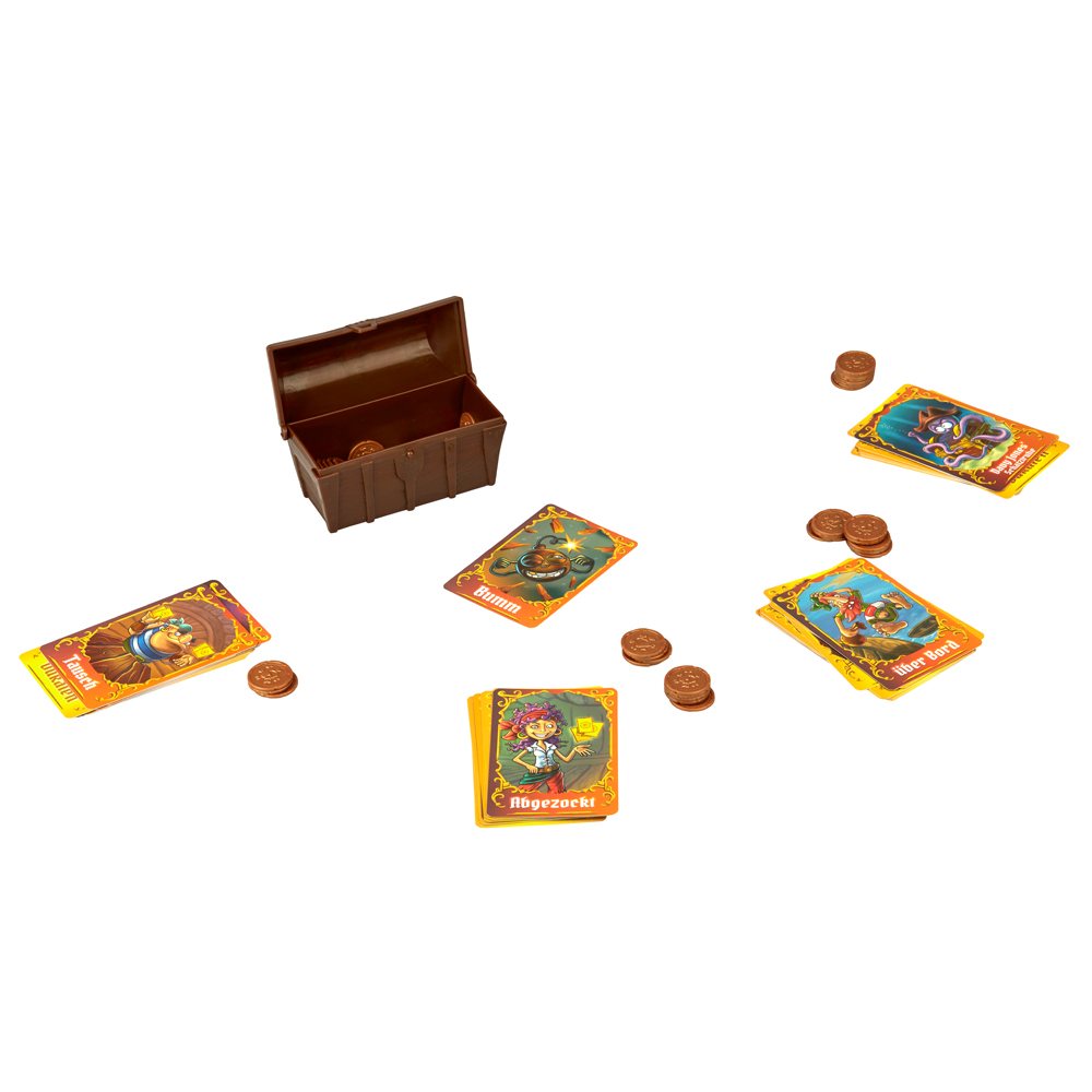 Das brenzlige Dukatenzocken! Du bist ein Pirat und hast mit deiner Bande gerade ein Schiff mit wertvoller Beute gekapert. Es gibt nur ein kleines Problem - im Eifer des Gefechts hat der Pulverraum Feuer gefangen. Wenn die Flammen das Pulver erreichen, fliegt das ganze Schiff in die Luft und schickt die Piraten mitsamt dem Schatz zu Davy Jones! Dein Ziel ist es, so viele Mzen wie mlich zu sammeln und rechtzeitig er Bord zu springen, bevor das Schiff in die Luft fliegt. Wer am Ende die meisten Mzen sammeln konnte, gewinnt das Spiel. Durch verschiedene Karten kann den Mitspielern das Leben schwer gemacht werden. Spieldauer etwa 20 Minuten.