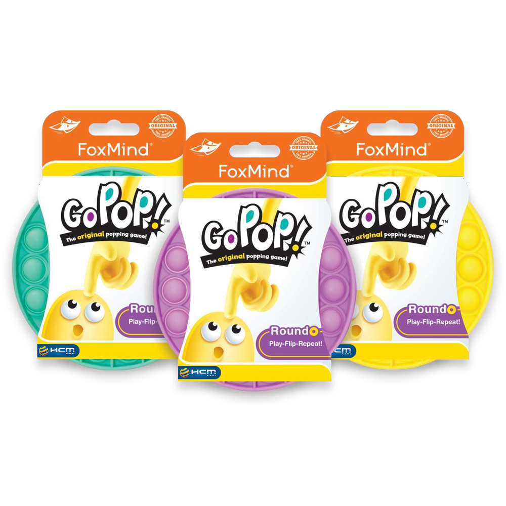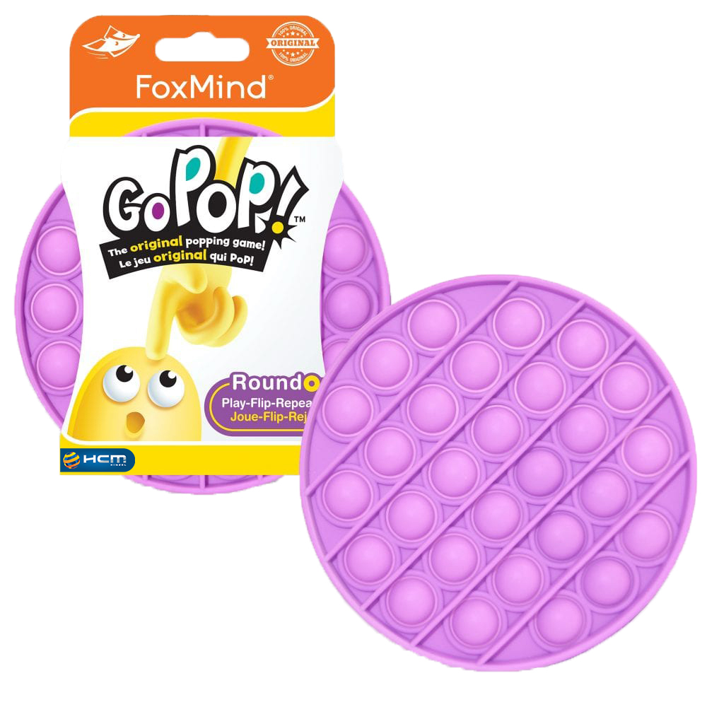 "GoPop™ – The clever popping game! So gehts: Drücke mit jedem Spielzug beliebig viele Bubbles innerhalb einer Reihe nach unten und bringe deinen Mitspieler dazu, die letzte Bubble auf dem gesamten GoPop™ Spielfeld zu drücken. Lustig, schnell und einfach genial! GoPop™ ist das Original Bubble Fidget und ein einfaches und cleveres Logikspiel für 2 Spieler, geeignet für Kinder und Erwachsene. Lasst euch nicht von der einfach aussehenden Form des originellen Bubble-Spiels täuschen. GoPop™ ist das neue Trend Fidget Game! Für GoPop™ gibt es einfache und fortgeschrittene Regeln. Dank der kompakten Größe und des langlebigen Materials habt ihr überall und jederzeit Spaß mit dem grenzenlose Bubble-Spiel GoPop™. Der GoPop™ Roundo ist in drei verschiedenen Farben erhältlich: gelb, lila und türkis"