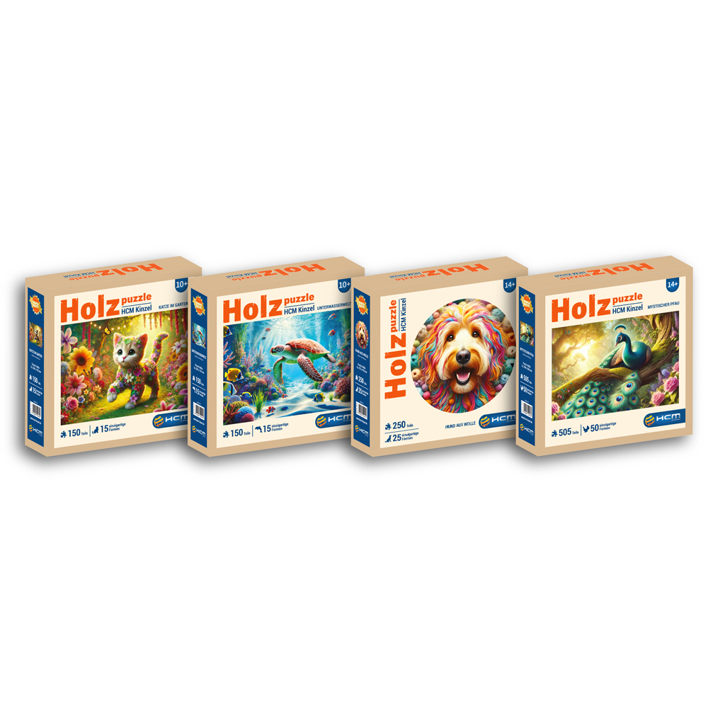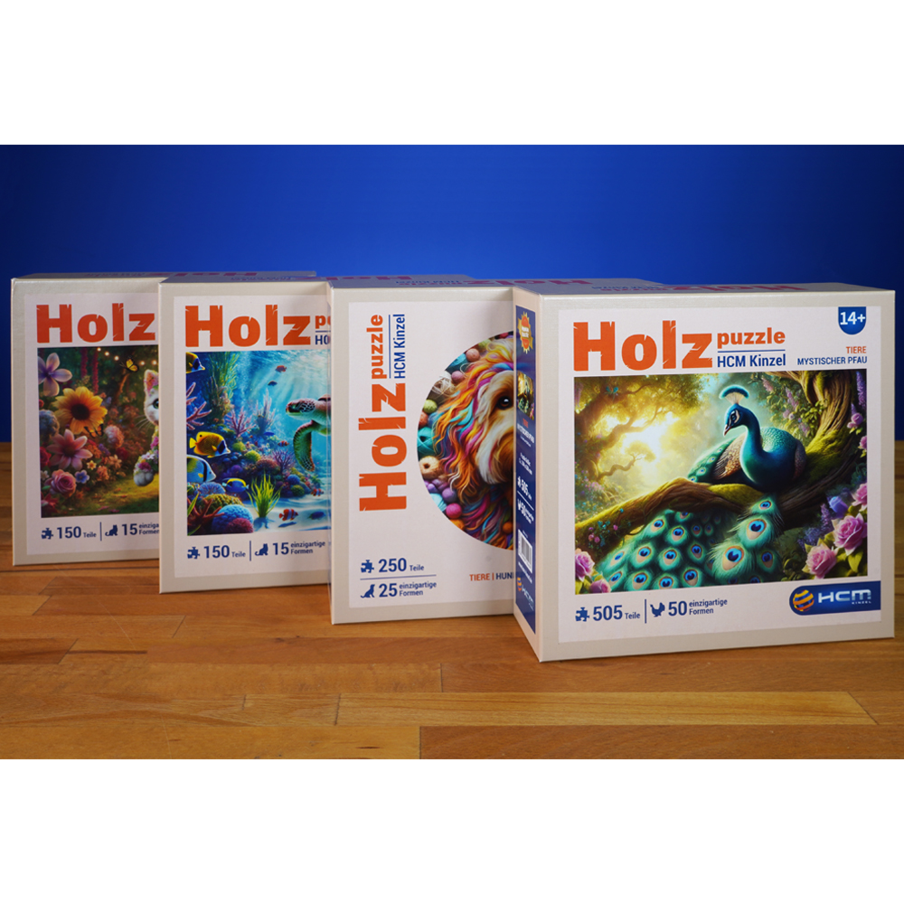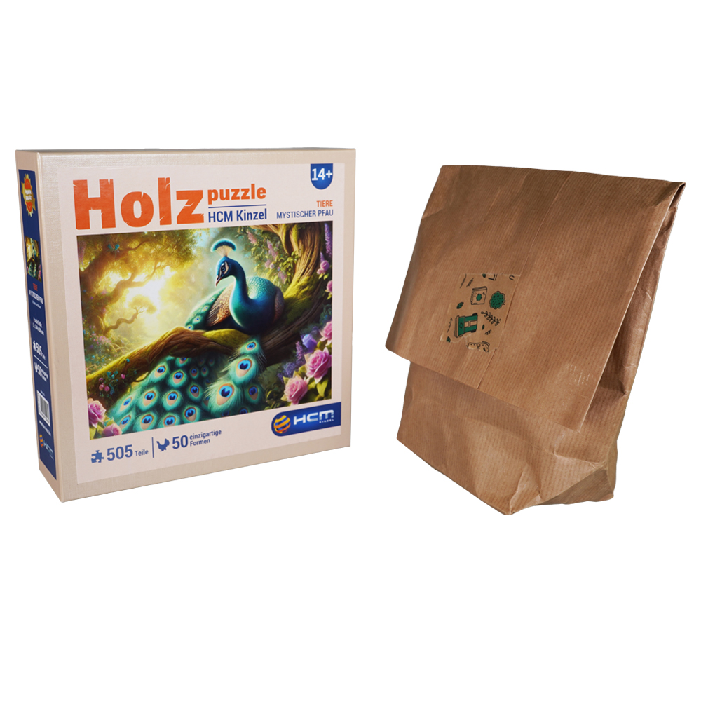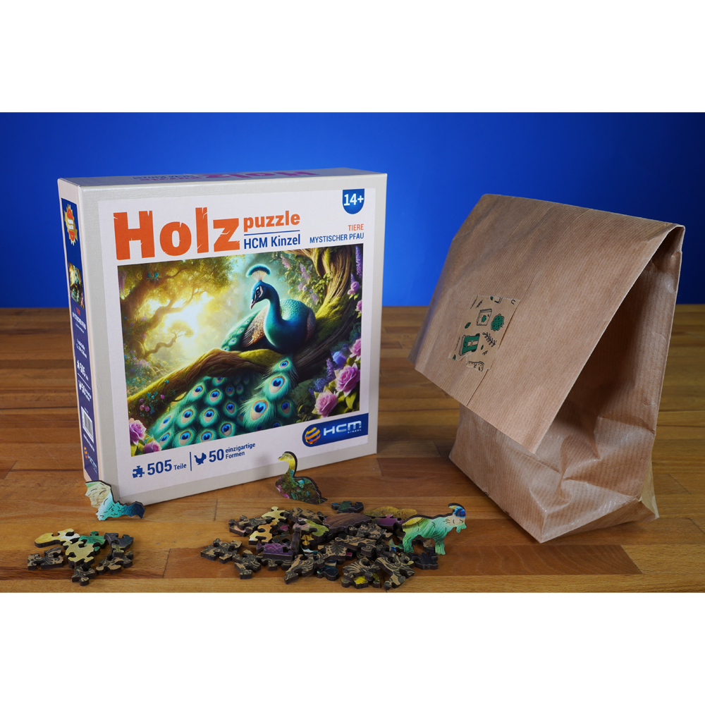 Sichere dir jetzt das HCM Kinzel Holzpuzzle Mystischer Pfau und genie ein einzigartiges, anspruchsvolles Puzzle-Erlebnis mit kstlerischem Flair!