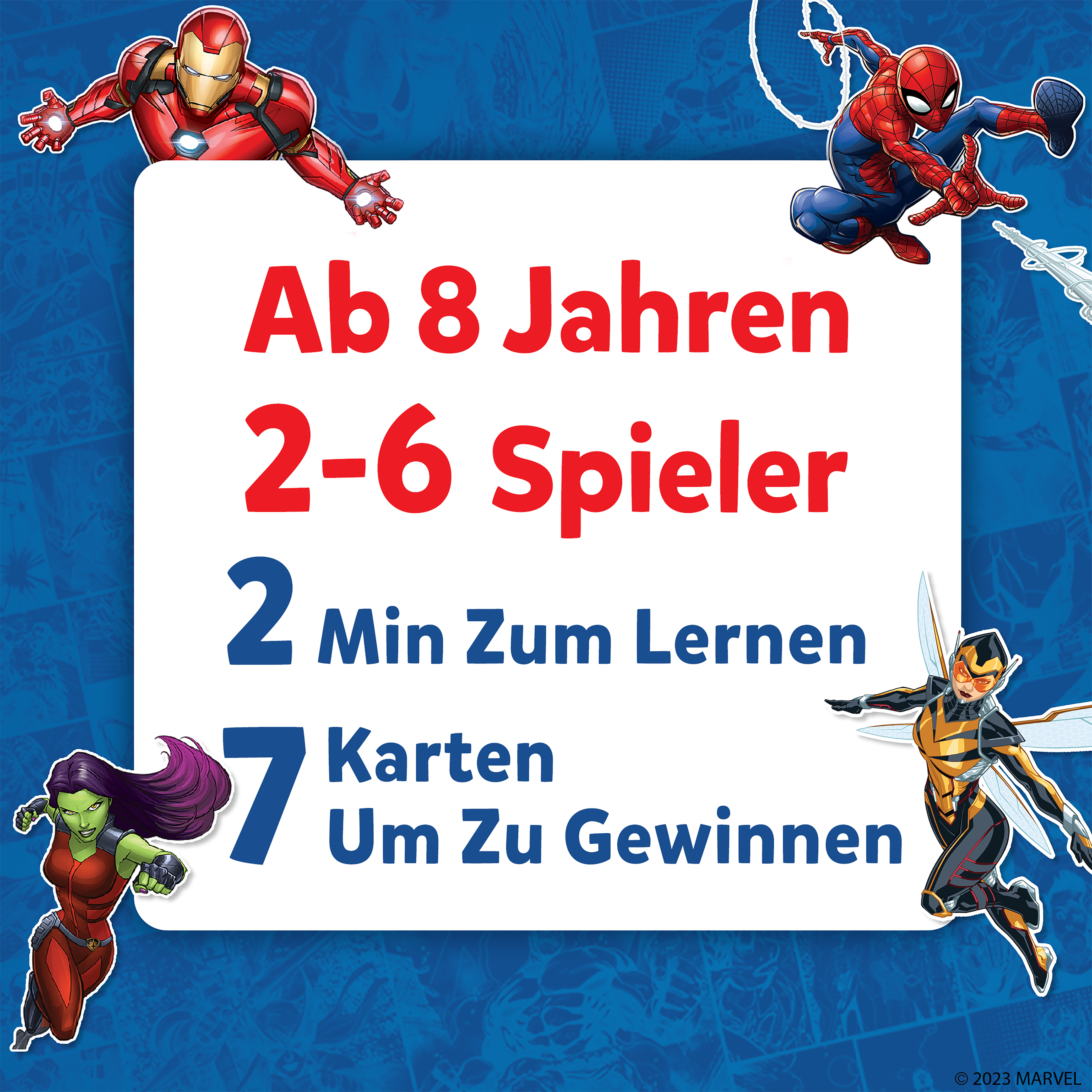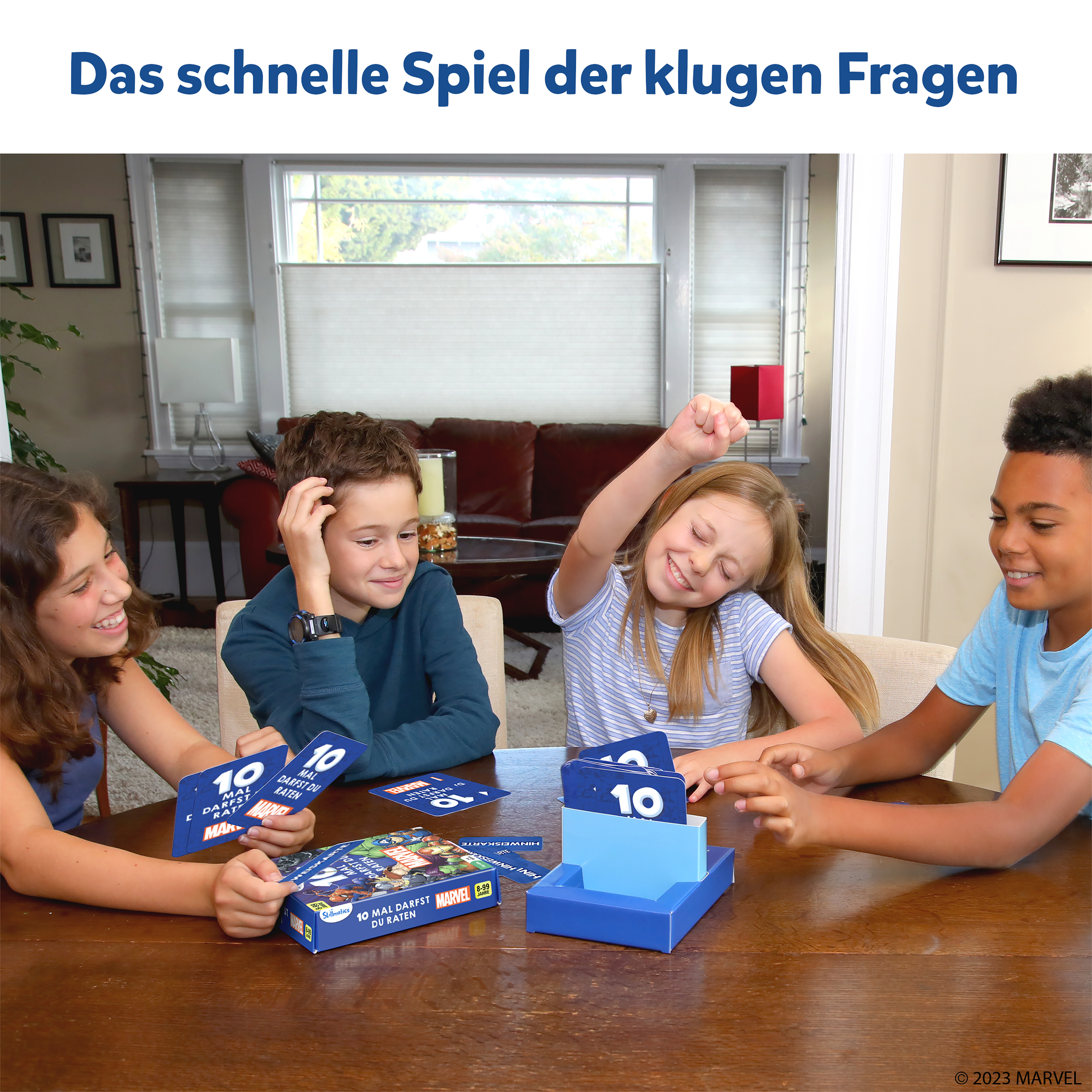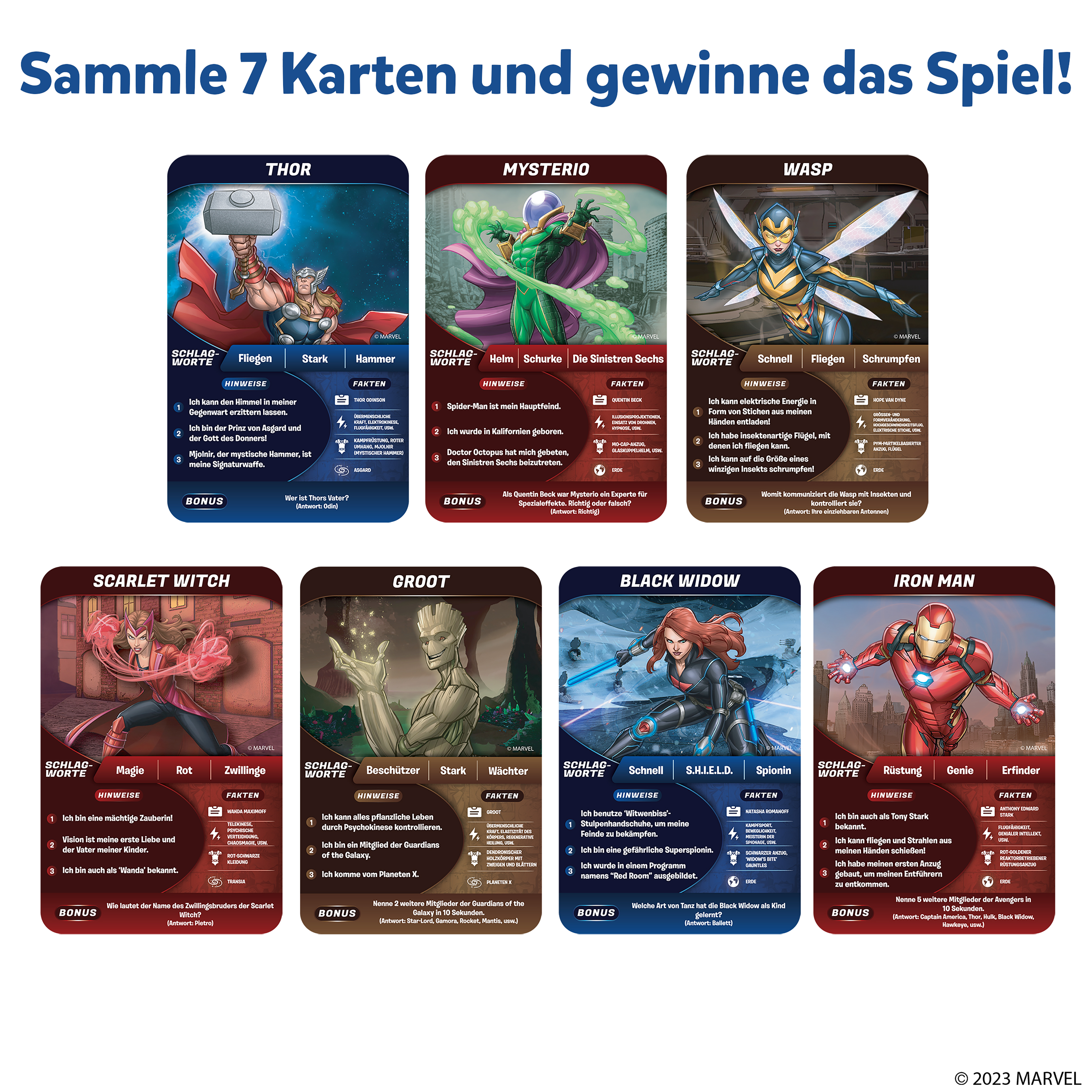 Bist du bereit f ein aufregendes Abenteuer in der Welt der Marvel-Superhelden? Deine Mission: Errate die Marvel-Figuren auf der Spielkarte, indem du bis zu 10 clevere Fragen stellst. Wer sind ihre Feinde? Welche unglaublichen Figkeiten besitzen sie? Nutze deine Scharfsinnigkeit und setze Hinweiskarten geschickt ein, um als Erstes sieben Spielkarten zu ergattern. Tauche ein in dieses spannende Abenteuer und beweise dein Wissen er die Marvel-Welt!