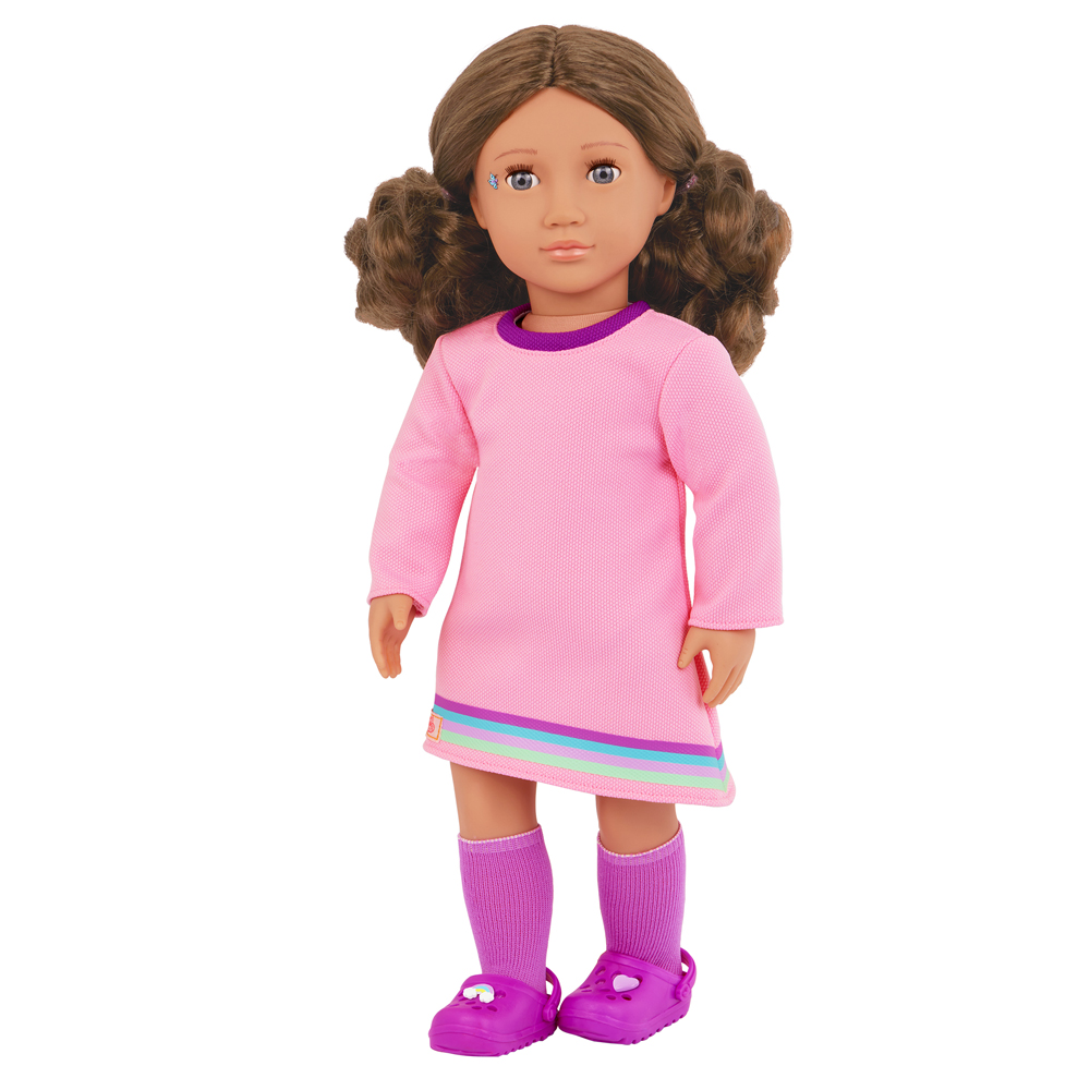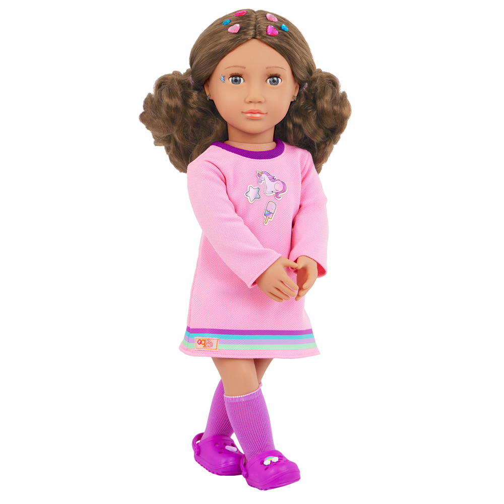 Entfalte deine Kreativit und erstrahle mit der Our Generation 46 cm Puppe Finley! Kinder knen auf neue und aufregende Weise dekorieren mit er 50 Stickern in Finleys unglaublicher Sammlung. Modebegeisterte knen Finley von Kopf bis Fumit Haarschmuck, Ohrring-Stickern und Outfit-Stickern verschern. Oder sie wlen aus duftenden Stickern, 3D-Stickern, thematischen Stickern und vielem mehr! Aurdem kommt dieses Set mit einem Stickerbuch, das auf der Rkseite ein Pop-it-Fidget-Cover f einen zuszlichen Hauch von Verspieltheit hat! Finley hat einen kuscheligen, weichen Kper und lebensechte Merkmale, die Puppenfans wrend des Spiels begeistern werden. Ihre einzigartigen violetten Augen fnen und schlien sich, und ihr welliges, hellbraunes Haar lst sich auf viele Arten stylen. Sie trt ein pinkes Kleid mit niedlichem Regenbogenbesatz, hohe Socken und Schuhe mit 2 Charms. F Kinder, die es lieben, sich zu verkleiden, hat ihr Outfit einfach zu fnende Verschlse, damit es schnell an- und ausgezogen werden kann. So knen sie verschiedene Looks kreieren und noch mehr Spahaben! Die Our Generation Puppen sind ein tolles Geschenk f Kinder ab 3 Jahren (kleine Teile), fdern die Fantasie und regen zur Entwicklung eigener Geschichten an.