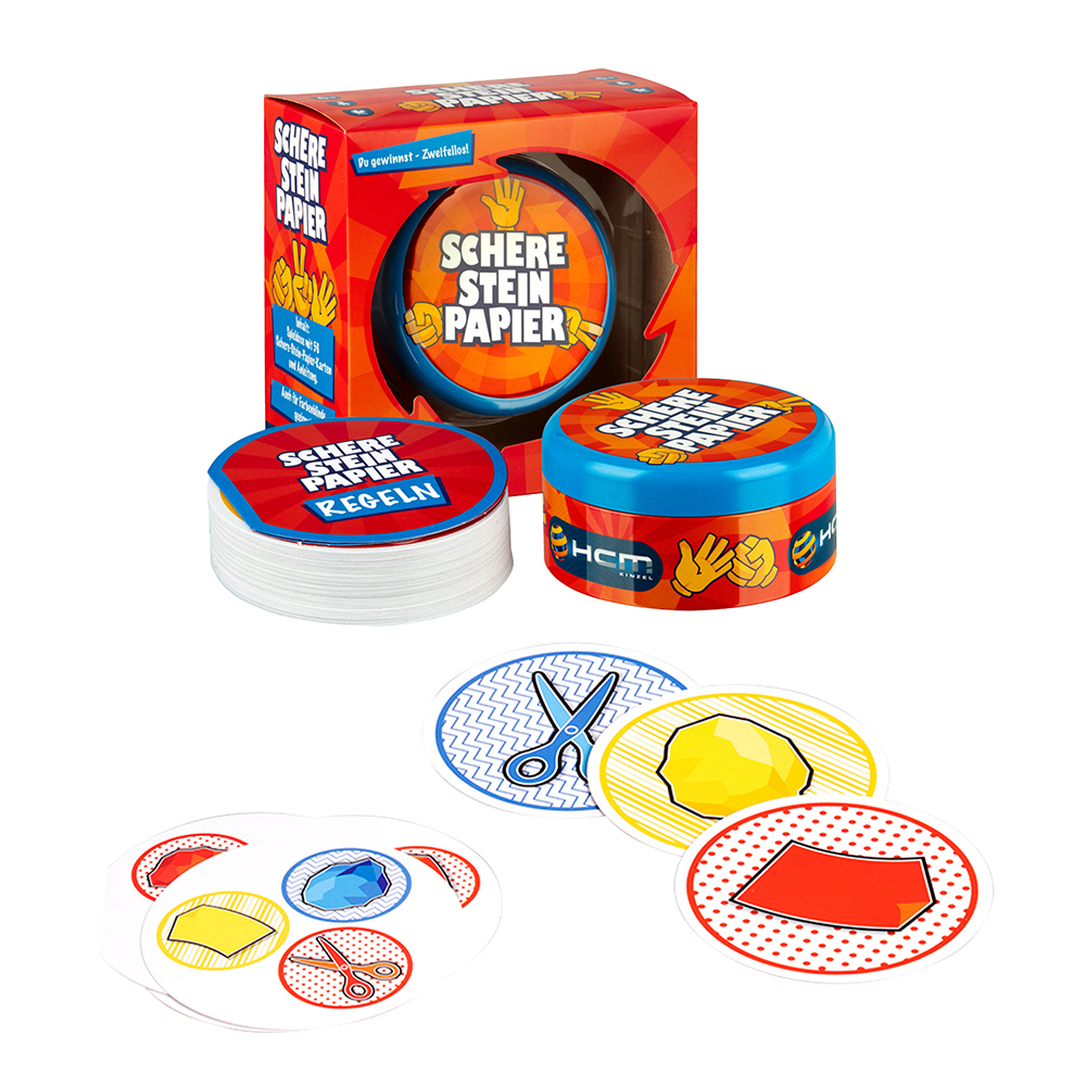 Dieses schnelle Action-Kartenspiel basiert auf dem allseits beliebten Spiel Schere-Stein-Papier. Behalte die Karten mit den Schere-, Stein und Papier-Symbolen genau im Blick. Versuche so schnell es geht, die Symbole der gleichen Farbe zu erkennen und forme mit deiner Hand blitzschnell das entsprechende Symbol, um deine Mitspieler zu schlagen. Wenn die beiden Symbole identisch sind, klatsche in die Hde. Ein beliebtes Spiel in neuer Variante - kombiniere schneller als deine Mitspieler, um so viele Karten wie mlich zu sammeln!