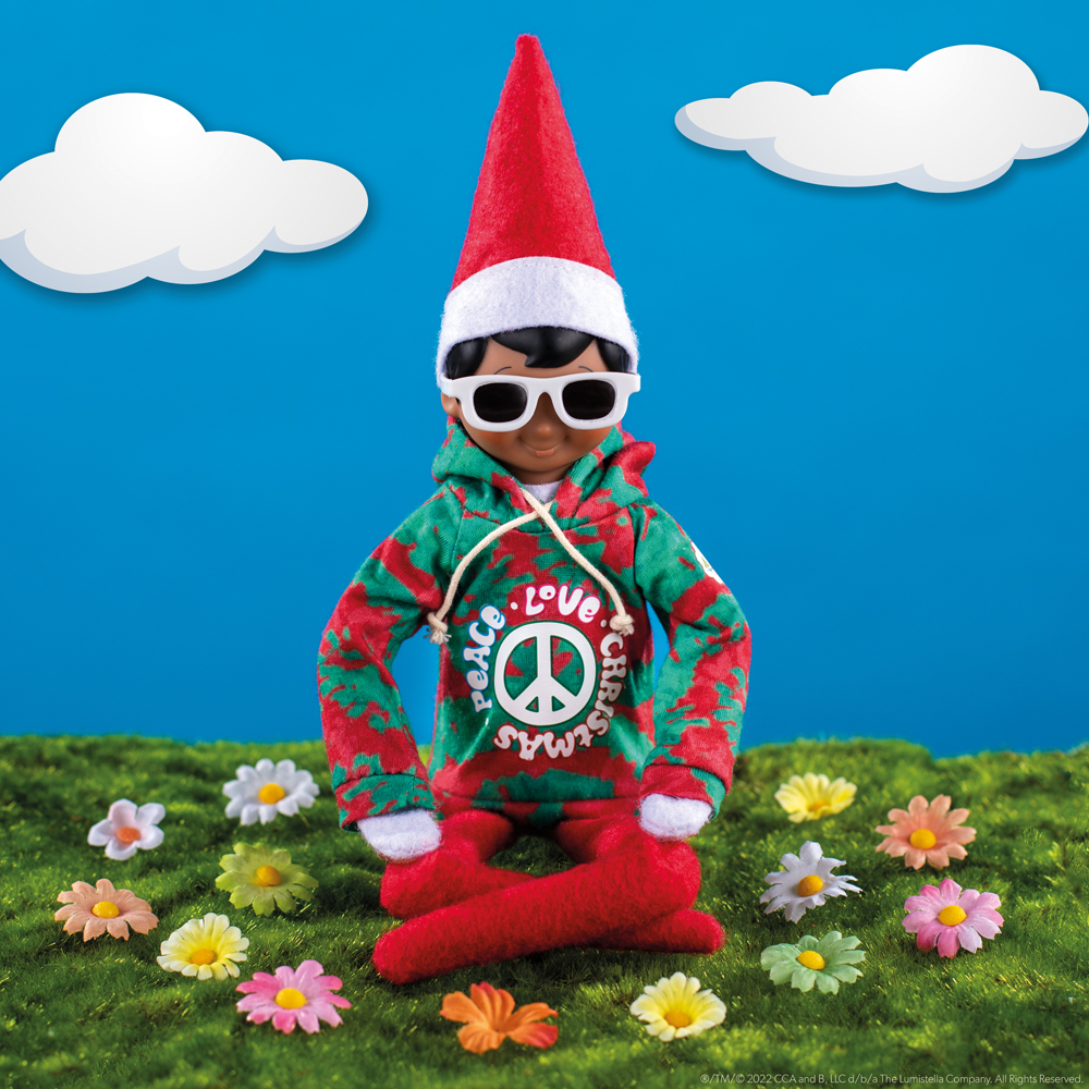 "Jetzt wird’s groovy! Mit dem The Elf on the Shelf® - Claus Couture® Love & Peace Set bringt dein Scout Elf eine coole und entspannte Atmosphäre in die Weihnachtszeit. Der stylische Tie-Dye Hoodie in fröhlichen Farben strahlt Liebe und Frieden aus, während die trendige Sonnenbrille dem Outfit das gewisse Etwas verleiht. Dein Scout Elf ist nicht nur bereit für die festlichen Abenteuer, sondern auch ein echter Hingucker in jeder Weihnachtsdekoration. Das Love & Peace Set ist ideal für Kinder ab 3 Jahren und verleiht der beliebten The Elf on the Shelf® Tradition eine besondere und coole Note. Dein Scout Elf wird die Herzen aller erobern, während er in seinem lässigen Hoodie die Weihnachtszeit genießt. Die weichen Materialien sorgen dafür, dass sich dein Elf rundum wohlfühlt, während er seinen Dienst für den Weihnachtsmann erfüllt. Dieses Set bringt nicht nur den Scout Elf zum Strahlen, sondern auch alle, die die Magie von Love & Peace in die Weihnachtszeit integrieren möchten. Perfekt für unvergessliche Momente und ein grooviges Weihnachtsgefühl – platziere das Outfit dort, wo dein Scout Elf es finden kann, und er wird wissen, was zu tun ist."