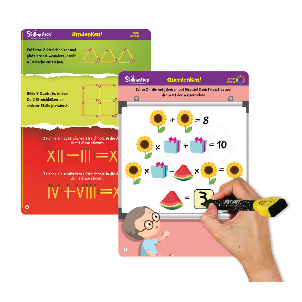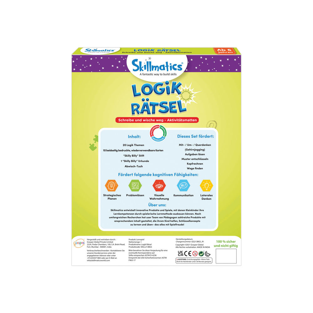 "Mit Skillmatics „Logik Rätsel“ lernen Kinder das logische Denken durch spannende Herausforderungen. Unsere Rätsel sind speziell entwickelt worden, um logisches und problemlösendes Denken mithilfe spielerischer Lernmethoden zu fördern. Dieses Set enthält innovative Aktivitäten, die gleichermaßen für Kinder und Erwachsene geeignet sind."